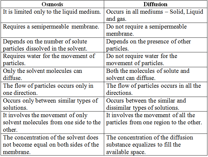 Difference Between Osmosis And Diffusion In Tabular Form